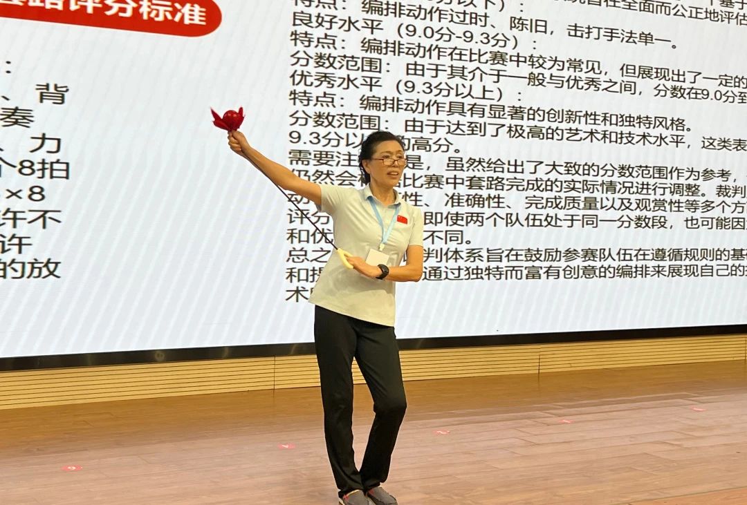 在為期三天的活動(dòng)中,不僅有健身球操競賽規(guī)則的解讀,還包括賽事活動(dòng)的組織策劃及套路教學(xué)。