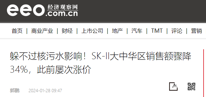 此外,據(jù)日本東電對外公布的計(jì)劃顯示,日本福島核電站計(jì)劃于2024年排放約5.4萬噸核污水至海洋。這一舉動(dòng)無疑將對日本的鎂鹽產(chǎn)業(yè)造成更大的沖擊。且市場對日本鎂鹽下游產(chǎn)品反應(yīng)更加明顯,尤其是在日化這樣廣泛添加鎂鹽又與人們?nèi)粘I蠲芮邢嚓P(guān)的領(lǐng)域,市場更加敏感。例如日本的SK-II品牌大中華區(qū)銷售額已驟降34%;資生堂2023年三季度中國市場銷售額下降20%以上。