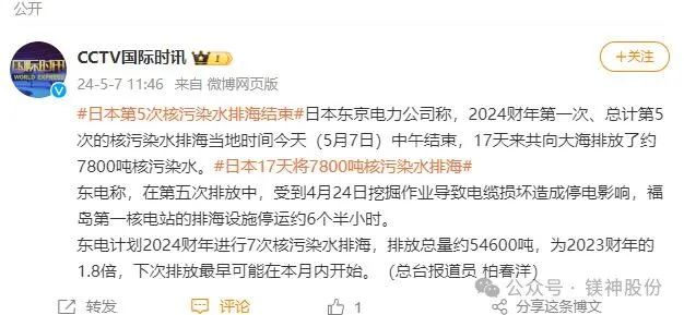 根據(jù)東電公布的最新計(jì)劃,2024年度擬分7次排出5.46萬噸核污染水,是2023年度的約1.7倍。日本國內(nèi)外民眾持續(xù)抗議核污染水排海,但日本政府和東京電力公司無視民眾怒火,執(zhí)意排污,引發(fā)廣泛擔(dān)憂。多家日本企業(yè)(如:日本神島化學(xué)有限公司、日本協(xié)和化學(xué)工業(yè)有限公司、日本富田制藥株式會(huì)社、日本宇部株式會(huì)社、日本達(dá)泰豪化工工業(yè)株式會(huì)社等)正在使用被核廢水污染的海水生產(chǎn)鎂鹽產(chǎn)品(如:碳酸鎂、硫酸鎂、氫氧化鎂、氧化鎂等)的事實(shí)引起了人們的關(guān)注。
