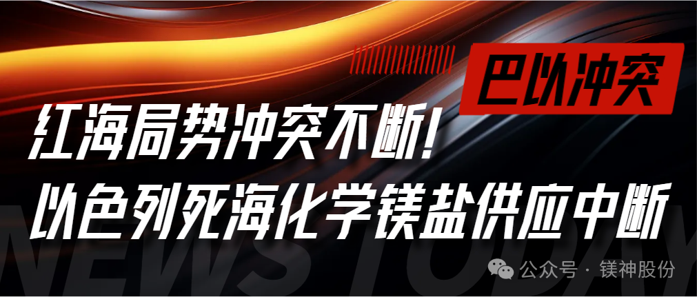 最新消息,也門胡塞武裝發(fā)言人葉海亞·薩雷亞當(dāng)?shù)貢r間27日稱,胡塞武裝對美國海軍部署在紅海的2艘驅(qū)逐艦發(fā)動了無人機(jī)襲擊,并準(zhǔn)確擊中目標(biāo),紅海緊張局勢再度升級。且胡塞武裝發(fā)言人葉海亞·薩雷亞之前也宣布向所有向以色列輸送貨物的船只發(fā)起襲擊。受此影響,死?;瘜W(xué)溴業(yè)有限公司(DEAD SEA BROMINE COMPANY LTD)鎂鹽生產(chǎn)中斷、產(chǎn)品運(yùn)輸成本暴漲,給全球鎂鹽供應(yīng)鏈帶來不良影響。